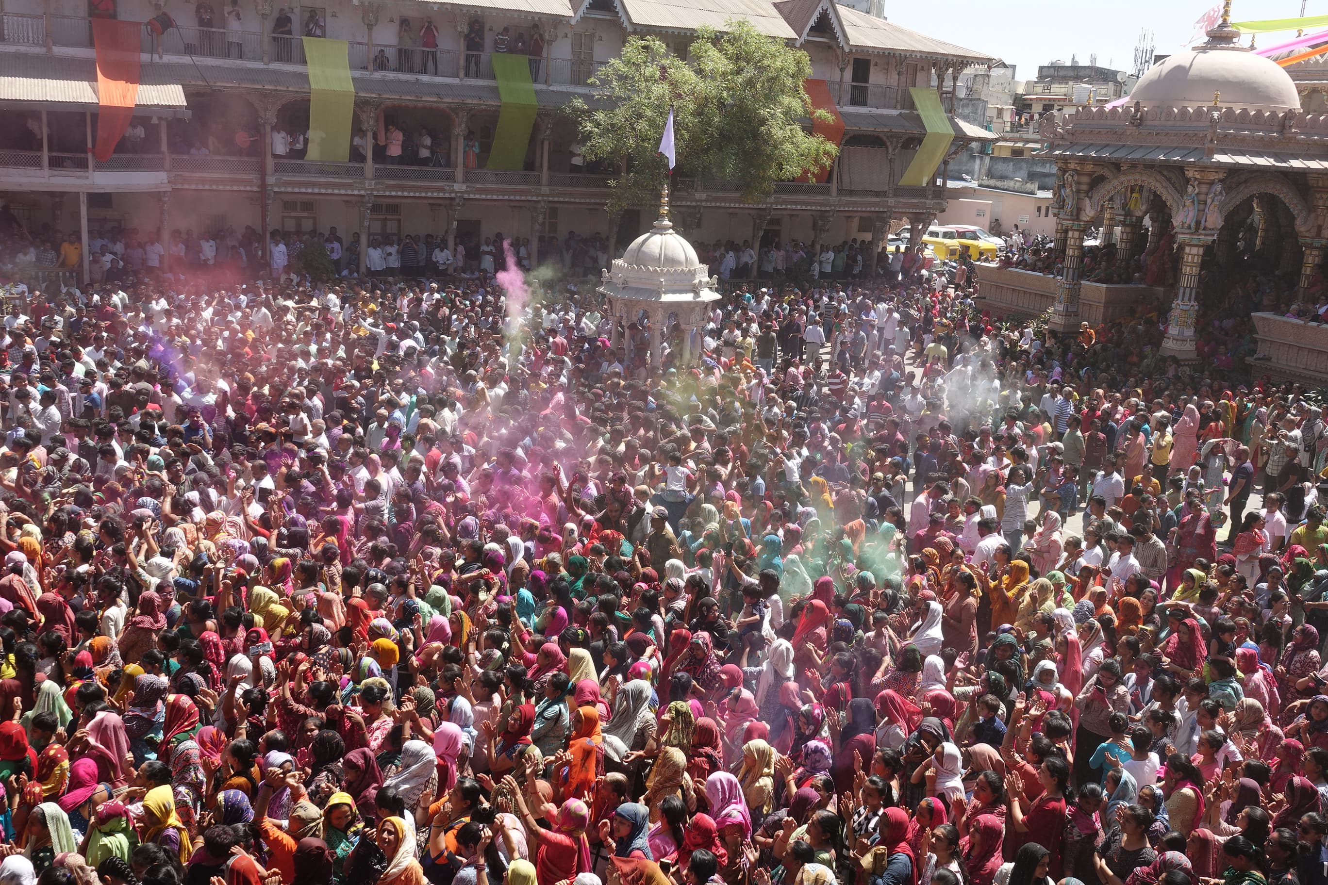 Un lieu particulièrement bien choisi. En effet, dans un endroit quelconque, nous aurions uniquement assisté à un moment festif païen alors que Holi puise ses fondements dans la religion.