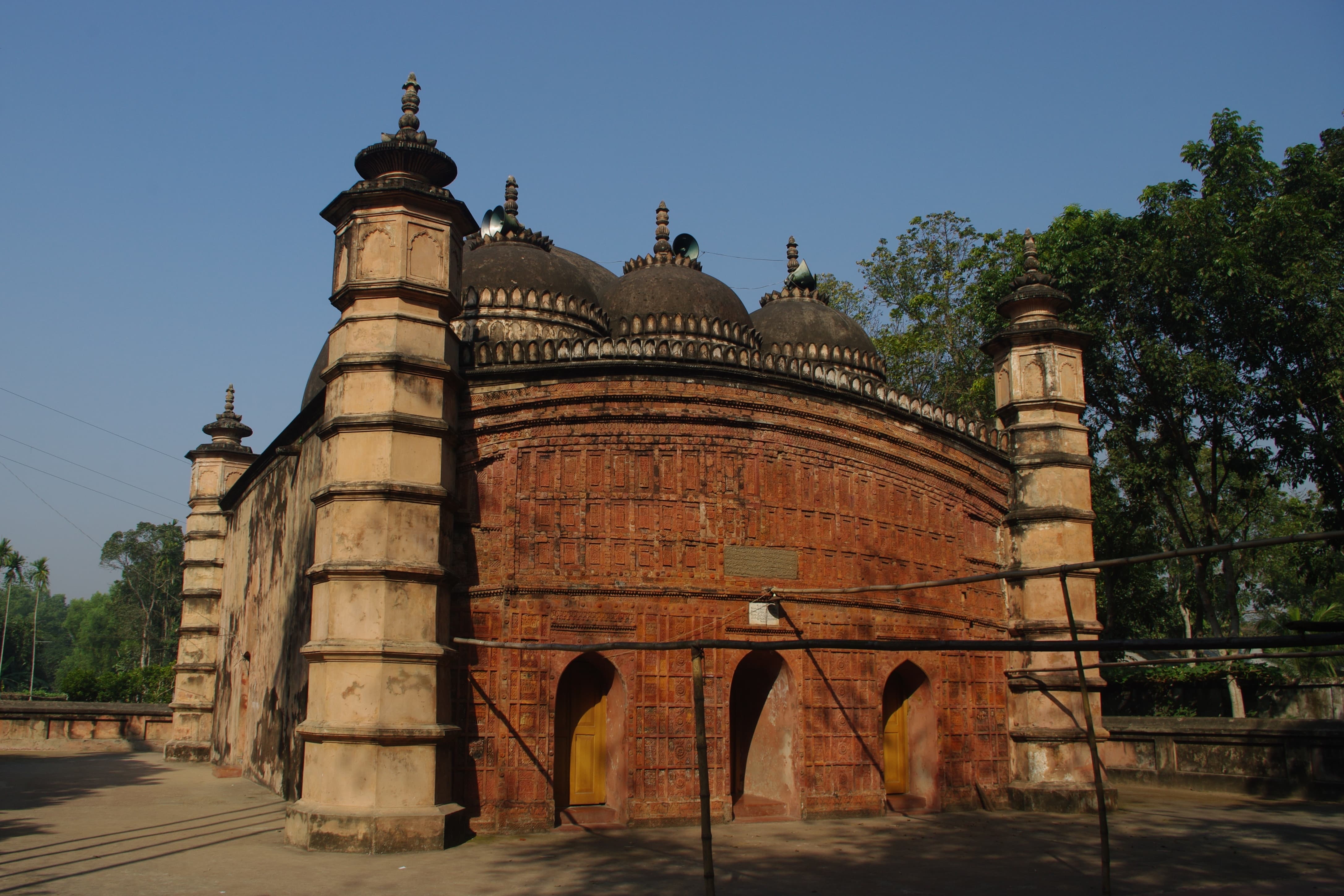 Après le petit déjeuner nous visitons le complexe des temples Navaratna de Hatikumrul, situé à Sirajganj. Puis nous prenons la route pour aller visiter la mosquée Atiya (XVIIe siècle) à l'architecture bengalie faite de briques et de décorations en terre cuite. Nous nous arrêtons à Tangail pour visiter le temple de Siraiganj Navaratna ainsi que le palais de Zamindars de Mohera. Arrivée sur Gazipur en fin d'après-midi.