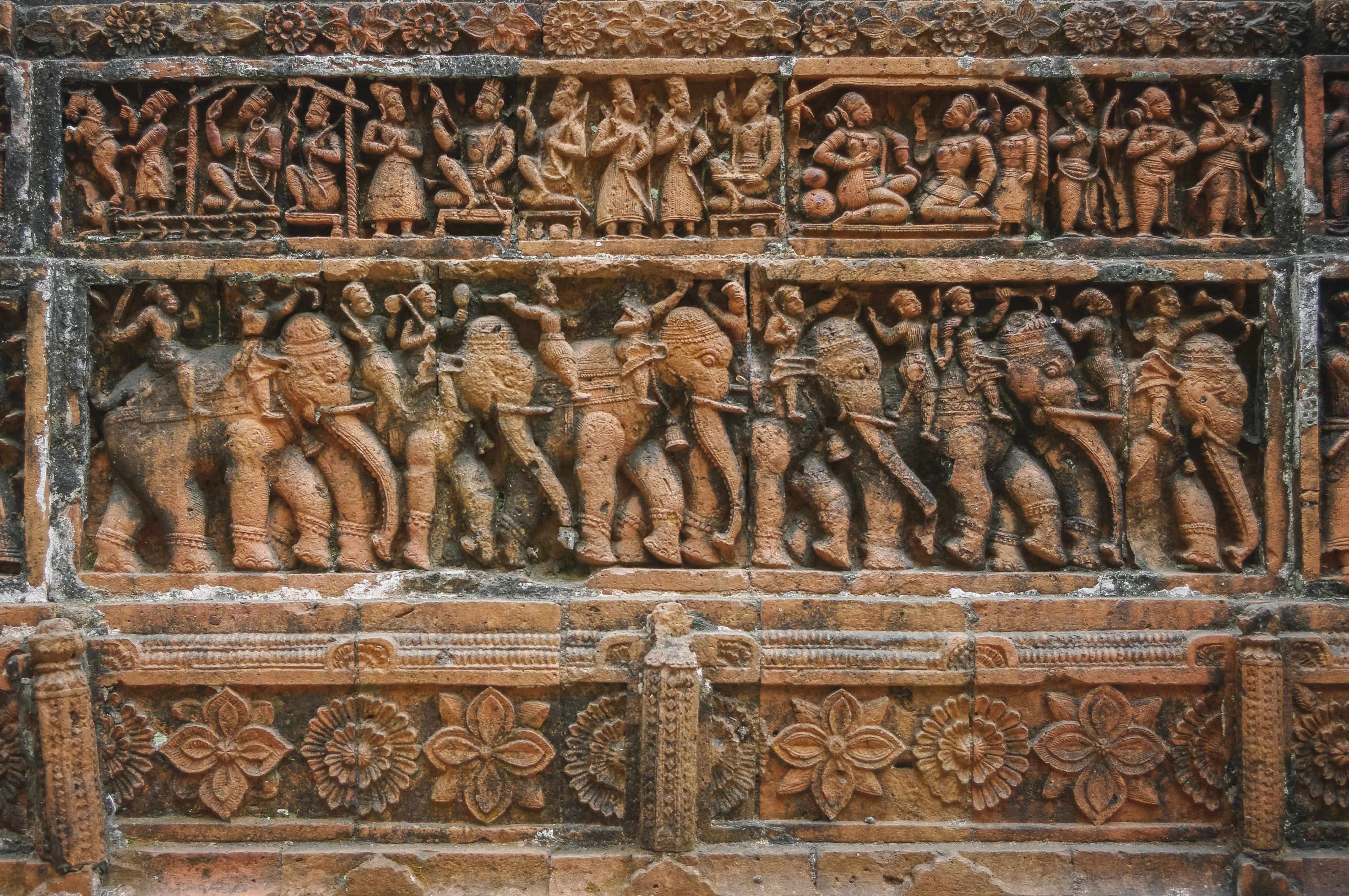 Après la visite du Rajbari, route vers le nord pour aller visiter le magnifique temple de Kantanagar (XVIIIe siècle), aux bas-reliefs en terre cuite, d'une incroyable finesse, magistralement ciselés. Non loin, nous trouvons la mosquée de Nayabad (XVIIIe siècle). Avant d'arriver à Bogra, visite de la mosquée Sura (XVIe siècle), puis déjeuner pique-nique près de celle-ci. Visite des vestiges de l'ancienne cité de Mahasthangar (Pundra Nagar), qui serait vieille de 2 700 ans. Arrivée à Bogra en fin de journée.