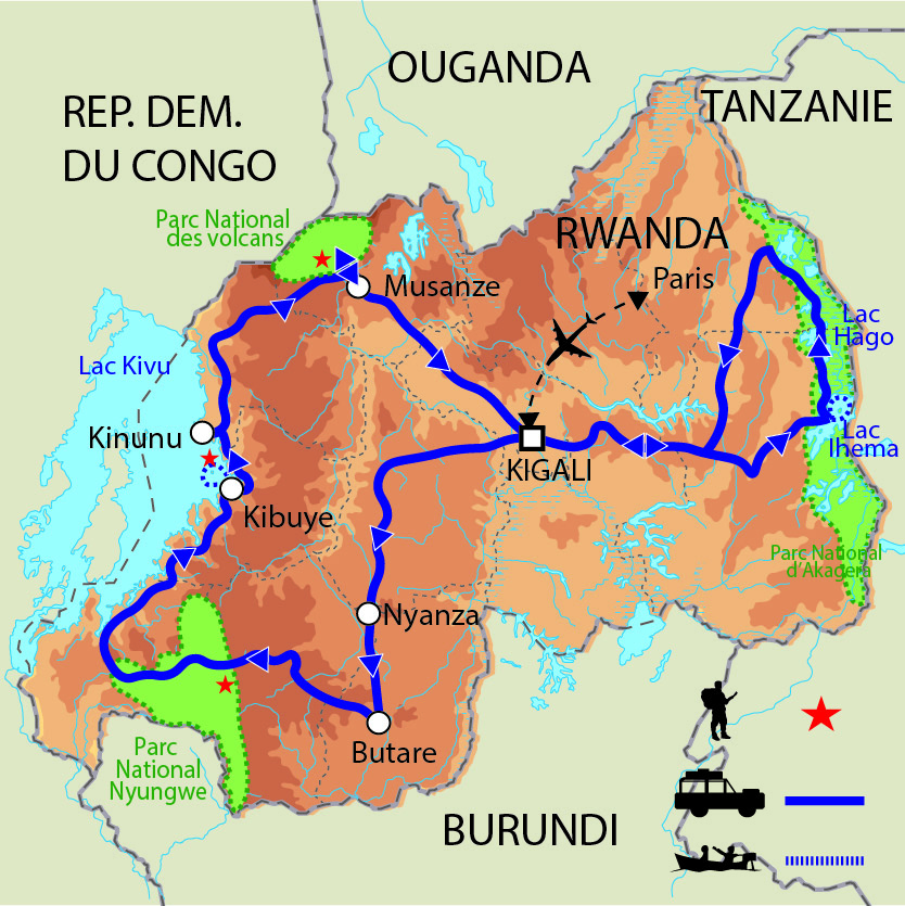 Le voyage s’ouvre sur un aperçu complet de l’histoire, de l’artisanat et de la vie locale à Kigali, avec le mémorial du génocide et le marché de Kimironko. Puis, l’aventure se poursuit au cœur de la nature, où trois parcs aux caractères bien distincts se succèdent : la forêt tropicale pour partir à la rencontre des primates et observer sa richesse ornithologique, les montagnes volcaniques pour rencontrer les gorilles dans leur habitat, et les vastes savanes pour un safari à la découverte de toute la faune emblématique. Des excursions en bateau sur les différents lacs permettent aussi d’explorer les paysages et d’observer la faune et les oiseaux depuis l’eau. Au fil du voyage, vous découvrirez le savoir-faire et les traditions rwandaises à travers des rencontres, des visites d’ateliers d’artisans. Une approche complète du Rwanda, où nature, culture et dimension humaine se répondent tout au long du voyage.